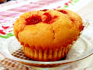苺ジャムたっぷりのしっとりマフィン By Riccobin レシピ マフィン レシピ 食べ物のアイデア お菓子 簡単